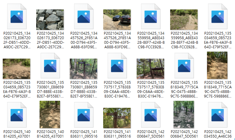변환 위치를 사진이 있는 위치로 하였고, 위와 같이 변환이 HEIC 원본 파일은 아이콘이 그리고 변환이 된 파일은 썸네일이 나온 것을 확인할 수 있다.