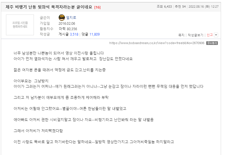 에어부산 제주행, 아기 운다고 부모에게 쌍욕 시전한 40대 남자
