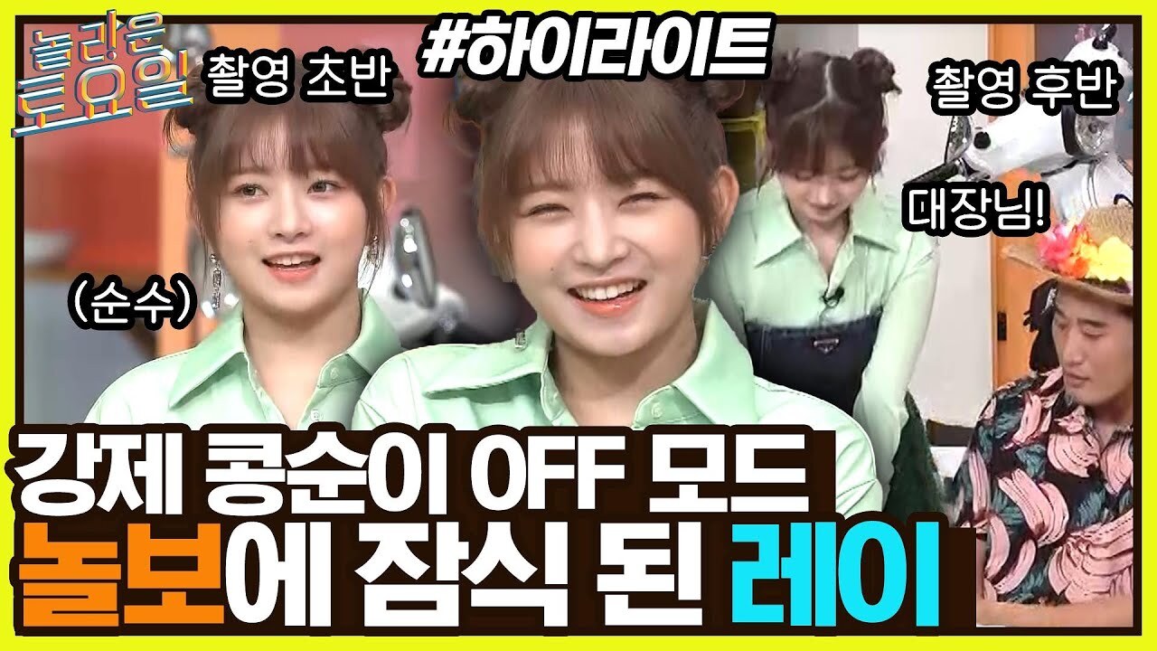 게다가 최근 안유진은 나영석 PD에 픽을 당하여 지구오락실에서 영지, 미미, 이은지와 함께 예능에서 맹활약 중이다. 여기서 안유진이 나오는 유튜브 조회수는 100만 이상이 기본으로 달리며, 나영석을 농락하는 머리 좋은 예능 캐릭터로 종횡무진하고 있다. 안유진과 장원영이 예능감이 좋다는 것은 알겠는데 다른 멤버는 아니지 않는가?라고 할지 모르지만, 아직 보여주지 않는 4명 중 제 2의 사나가 될 수 있는 레이도 존재한다.