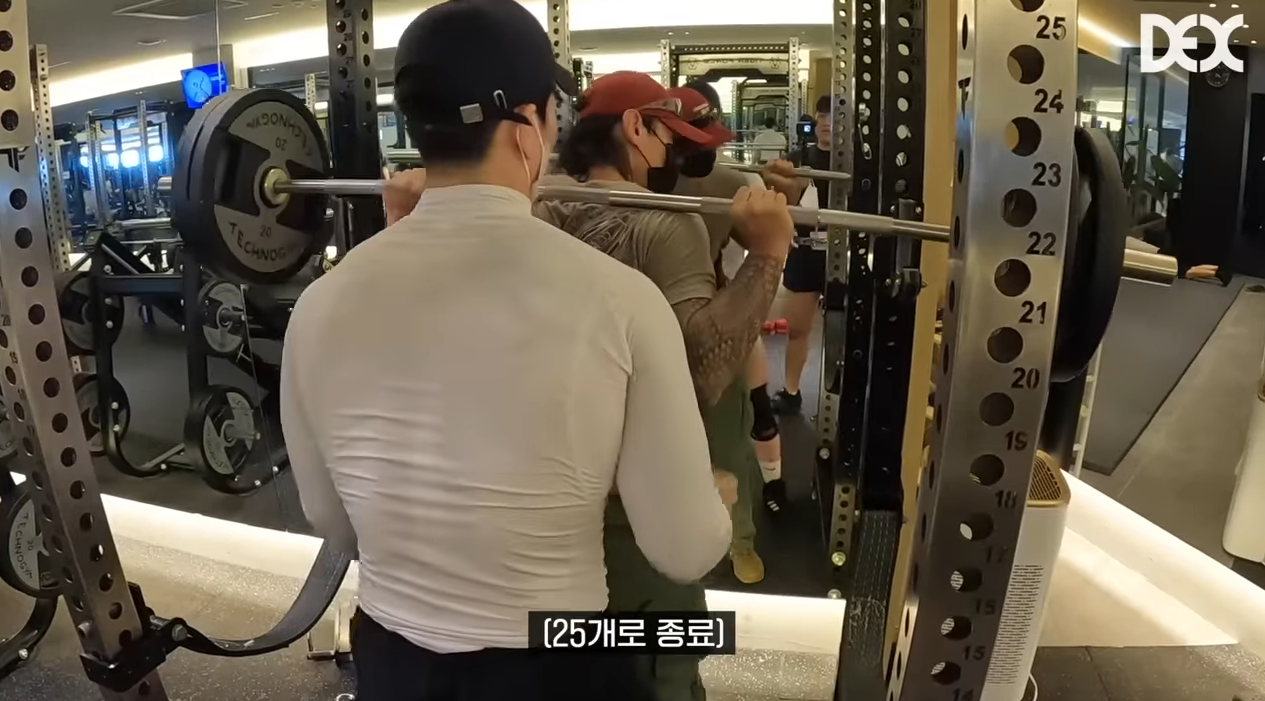 영상에서는 100kg을 25회로 종료했지만, 중간에 트레이너(UDT 장교 출신)가 같이 잡아주는 것을 볼 수 있습니다. 대충 10회부터 잡아주는데 10회까지 덱스는 힘든 기색없이 빠르게 드는 것을 볼 수 있고, 마스크를 쓰고 운동을 하고 있기 때문에 풀 컨디션이면 15회 이상은 충분히 들 수 있다는 것은 예상할 수 있는 것이죠.