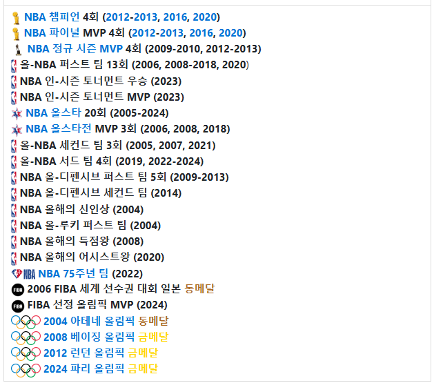 즉, 마이클조던은 그가 신인때와 부상을 당한 다음 시즌을 제외하고 87년부터 그가 은퇴할때까지 득점왕을 놓치지 않고 해당 포지션에 1위에 선정된 선수입니다. 반면 르브론의 기록을 보도록 하죠.