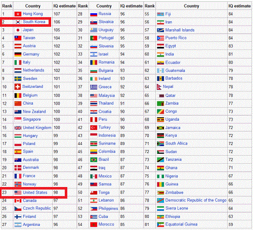 아이큐 순위도 늘 상 TOP 3안에 들지 여기에 홍콩, 싱가포르, 한국이 늘상 최상위권을 먹는 형태 중국같은 경우도 나라가 잘살면서 꾸준히 올라오는 모습...머리도 멍청한 나라가 IQ가 뭐 어쩌구 저쩌구?