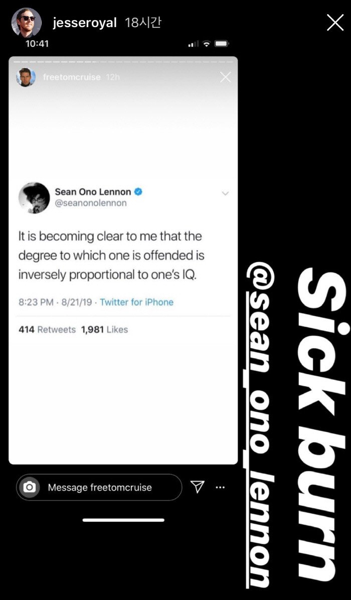 그러나 한국인들 뿐만 아니라 일본에게 엄청나게 많은 사람들이 학살 당한 중국인들은 이 사실이 개X이라는 것을 매우 잘 알고 있다. 이 싸움은 션레논과 한국인들과의 싸움에 마룬5의 키보디스트 제시 카마이클이 욱일기를 옹호하고 한국인을 비하하는 듯한 글에 옹호를 한 것으로 유래된다.